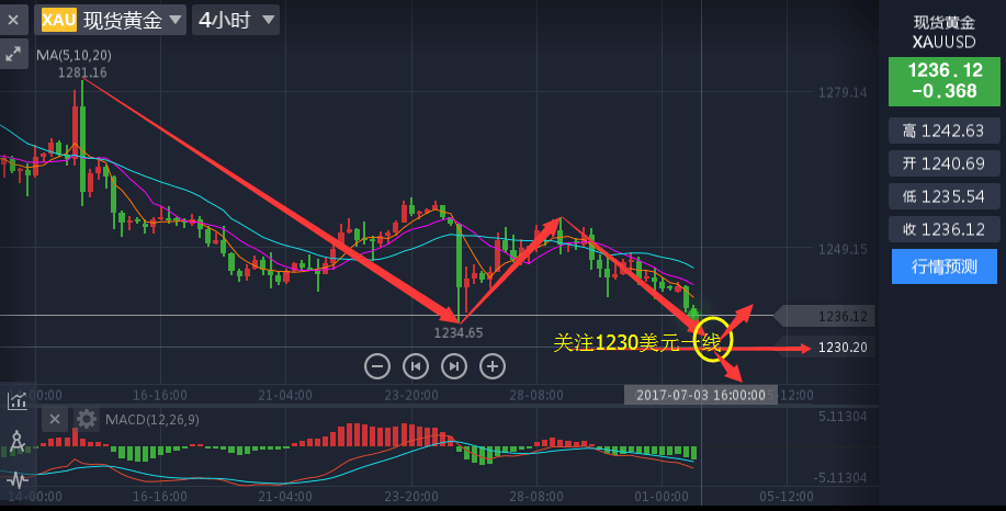 7.3黄金参考策略:反弹1238附近做空,止损1242,目标看1230-1228;