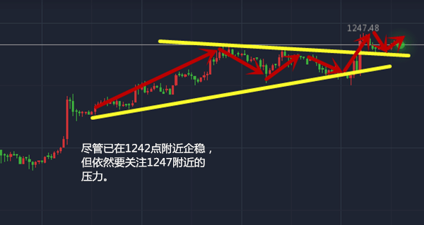 1244点潜在支撑位做多,目标位1248附近,止损两个点;1247点做空,目标位1242点。