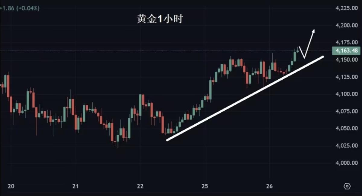 1小时结构倾向延续反弹,早间冲到4165美元后破了昨天的高点位置,多头会进一步延续向上。