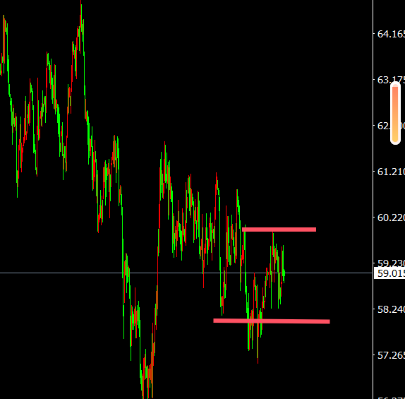 原油周三呈区间震荡,当天最低58.3,最高59.6,日线收阳于59.3,从日线看油价还将继续处于区间震荡,四小时线,小时线,均呈区间震荡,综述日内继续看震荡,先看58-60区间,突破再看顺延,上破看61,下破看57